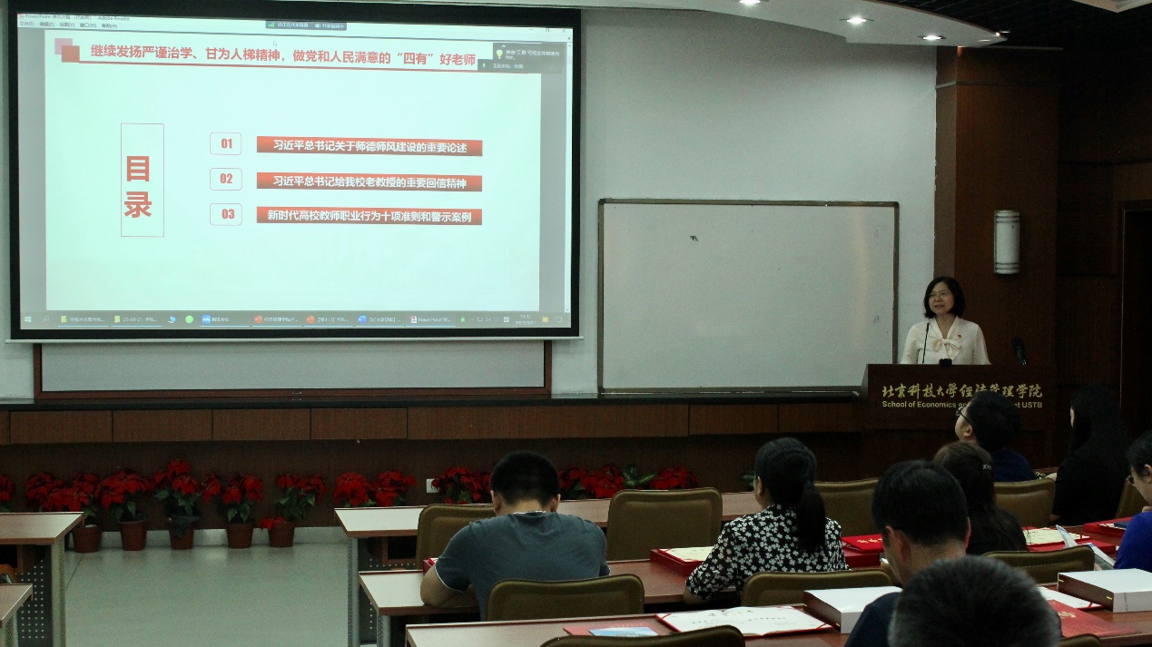 武森在报告中带领大家回顾了习近平总书记关于师德师风建设的重要论述和习近平总书记给我校老教授的重要回信精神,重点强调了《新时代高校教师职业行为十项准则》,再次说明了师德师风是评价教师队伍素质的第一标准,并着重以教师师德失范典型案例进行了警示教育,突出了警示教育的针对性、严肃性,参与学习培训的全院教职工要真正做到热爱教育事业,严守师德规范,继续发扬“严谨治学、甘为人梯”精神,为培养德智体美劳全面发展的社会主义建设者和接班人贡献力量。