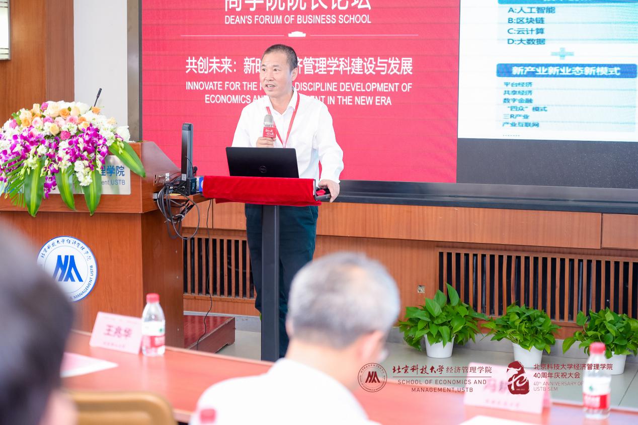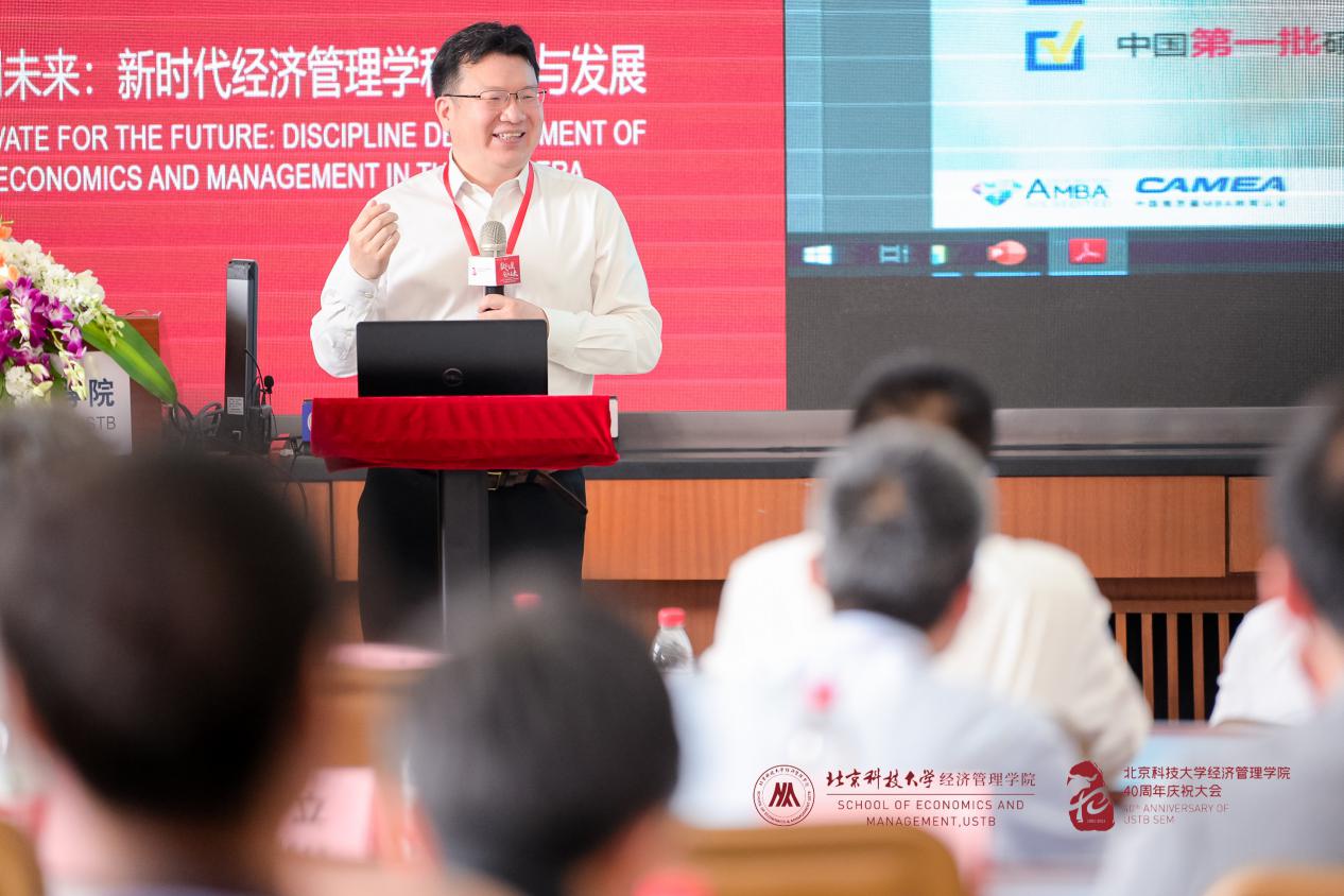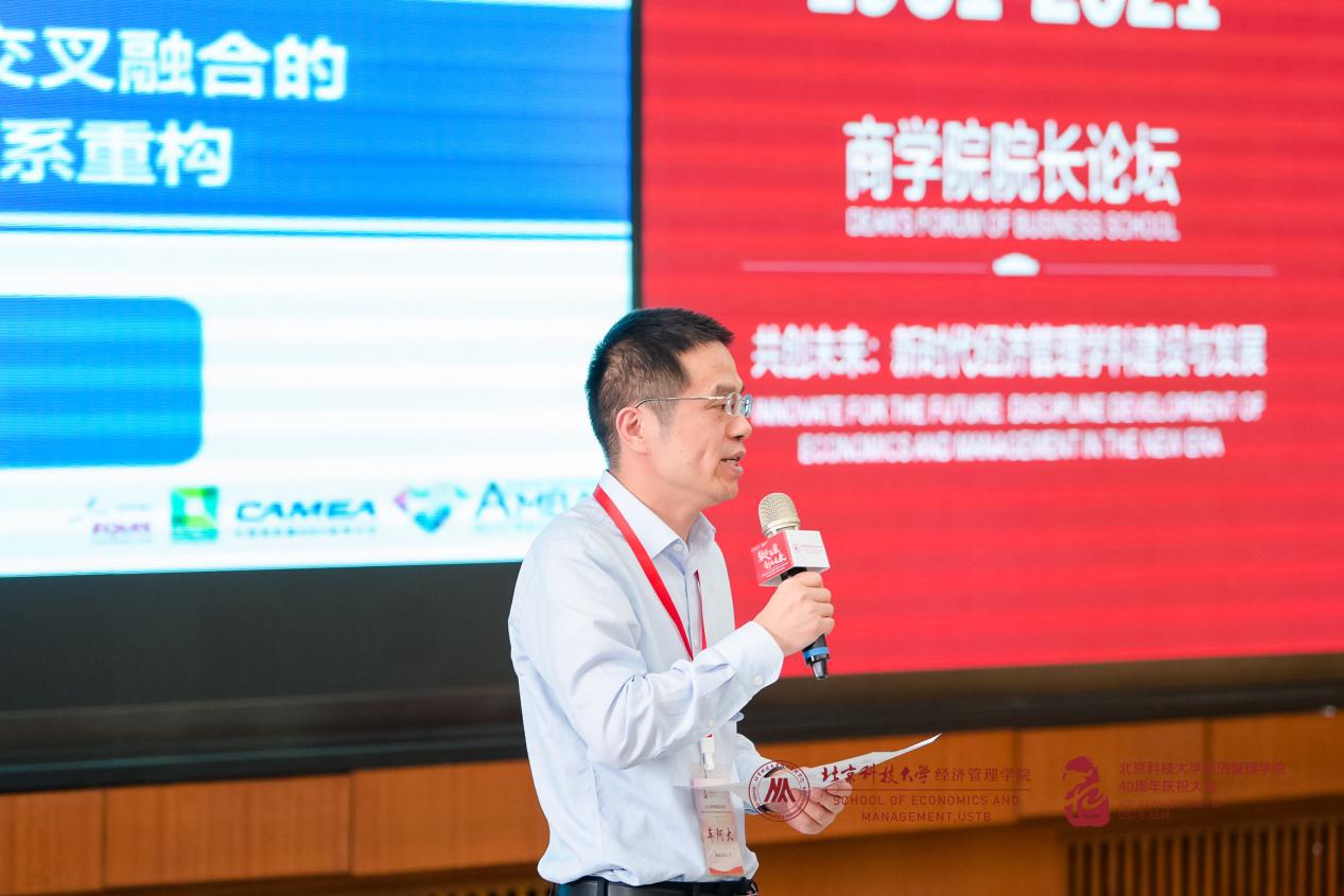 365英国上市官网院长闫相斌教授为论坛致辞。闫院长首先代表学院向支持和参加此次论坛的各兄弟院校院长、嘉宾、校友、老师和同学们表示热烈的欢迎和衷心的感谢!随后,闫院长从“数字化”新时代背景出发,基于经济和社会发展对复合型人才培养的要求,提出各商学院在加速推动我国经济数字化进程和产业链创新方面大有可为。最后闫院长表示,希望借此论坛学习各兄弟院校在新时代下建设和发展经济管理学科的宝贵经验,强化北科经管教育内涵,完善学科培养体系,提升办学质量,迈向更高的台阶。